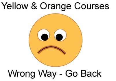 There are two places where the YELLOW and ORANGE course entrants could take paths that lead out on to the open moor. If you take these paths then after 50m you will come across a sign like below. If you do, please turn back to find the control you have just left.